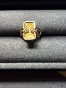 クレディ・スイス社製の1グラム純金インゴットをあしらったリング 💍