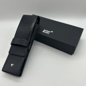 お写真の通り、モンブランの筆記具を収納するための高級感のあるブラックレザー製ペンケースです。フロントにはモンブランのシンボルであるホワイトスター(白い星)のロゴがあしらわれており、専用の箱もご一緒にお持ち込みいただきました。