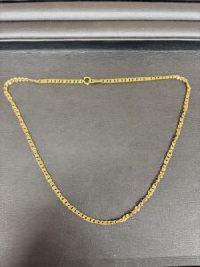 今回ご紹介するのは、上品な黄金色の輝きが目を引く、K18素材のネックレスでございます。