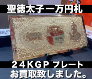 昭和時代に記念品として販売された、聖徳太子の一万円札を模した24金メッキ(24KGP)の金属製プレートをお買取りいたしました。