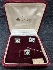 本日は、プラチナリングをお買取りいたしました。中央には爽やかなグリーンカラーのストーンがセッティングされ、両サイドには小粒ながらも美しい輝きを放つダイヤモンドがあしらわれた上品なデザインのリングです。プラチナの落ち着いた光沢と、透明感のあるグリーンストーンとのコントラストが非常に映え、洗練された印象を与えてくれます。