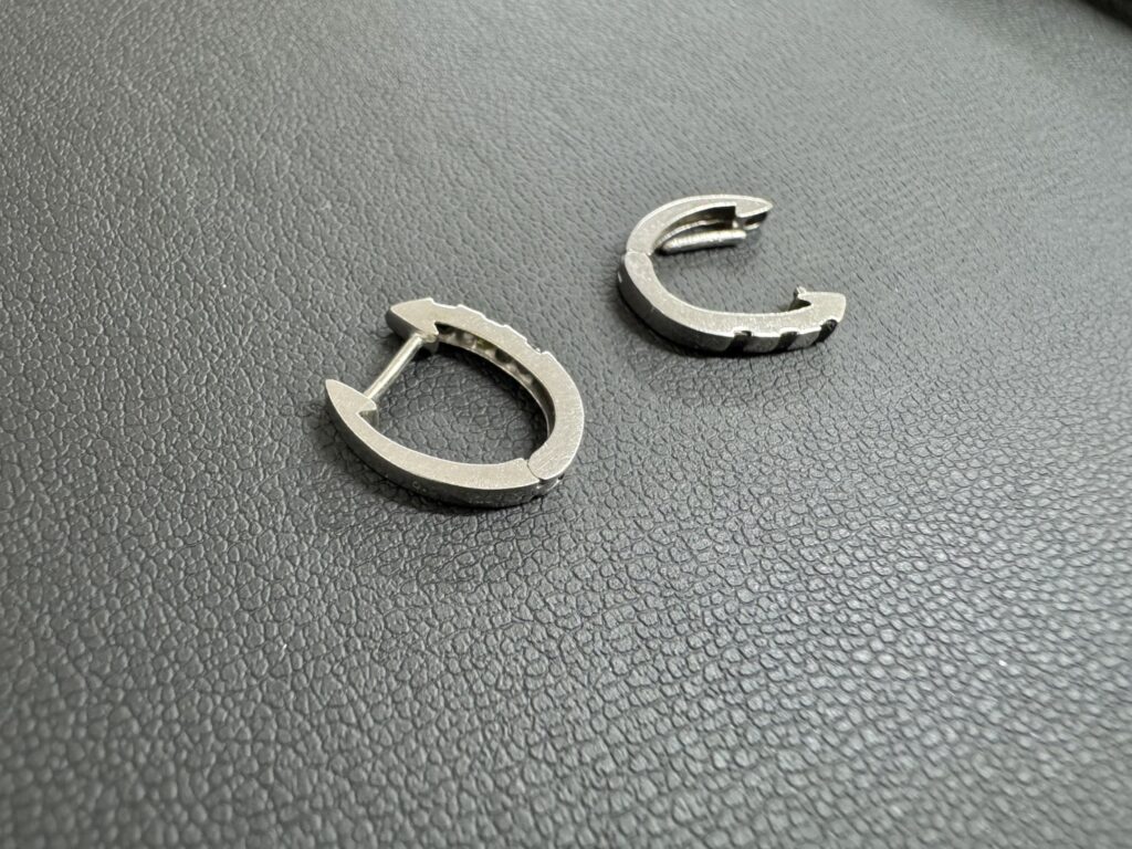 本日は、ホワイトゴールド(K14WG)のピアスをお買取りいたしました。こちらのお品物は残念ながら片方が壊れてしまっている状態でしたが、当店では金やプラチナといった貴金属の価値をしっかり評価いたしますので、このような状態でも問題なくお買取りが可能です。