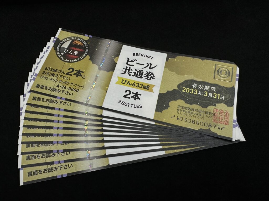 今回は、お客様よりビール共通券をまとめてお買取りいたしました!お祝いやお中元、お歳暮などの贈答品として非常に人気の高い金券です。