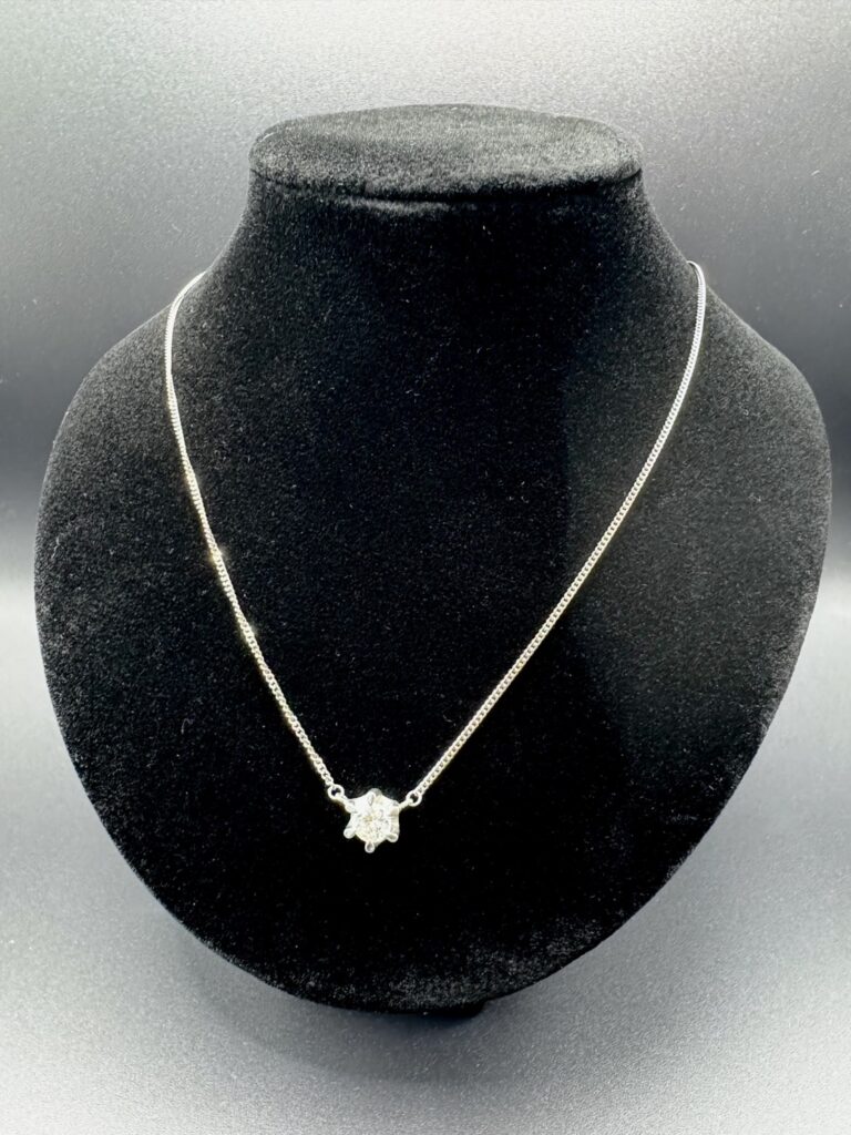 エレガントなPt850のチェーンに、シンプルながらも存在感のあるダイヤモンドがセッティングされた、非常に美しいお品物でした。