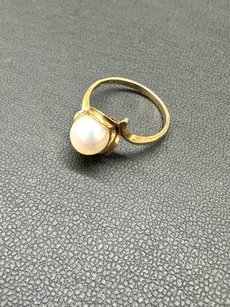 お持ち込みいただいたのは、肌馴染みの良いイエローゴールドの地金と、艶やかな光沢が魅力の大粒パールが調和した、非常に美しいリングです。