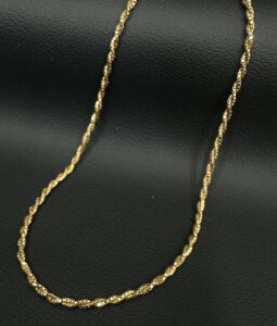 お持ち込みいただいたのは、スクリューチェーンと呼ばれるタイプのネックレスで、光の当たり方によってキラキラと繊細に輝き、華やかな首元にしたい際に好まれるデザインです。長く大切にされていたことが伝わるお品で、K18の素材価値とそのデザイン性をしっかりと評価させていただき、お客様にご満足いただけるお買取りとなりました!