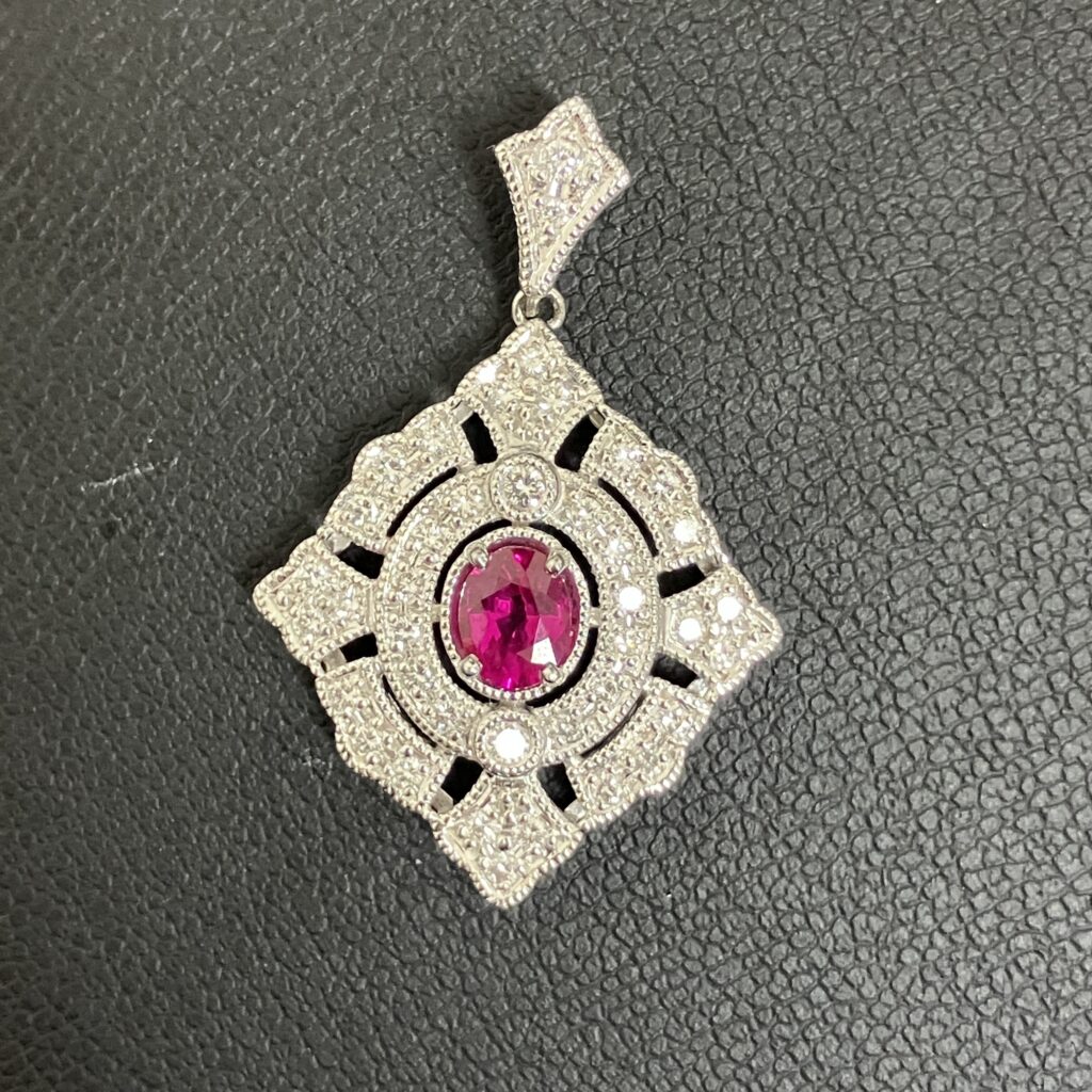 今回、ルビーの周りにメレダイヤをあしらったゴージャスなネックレストップをご売却いただきました!