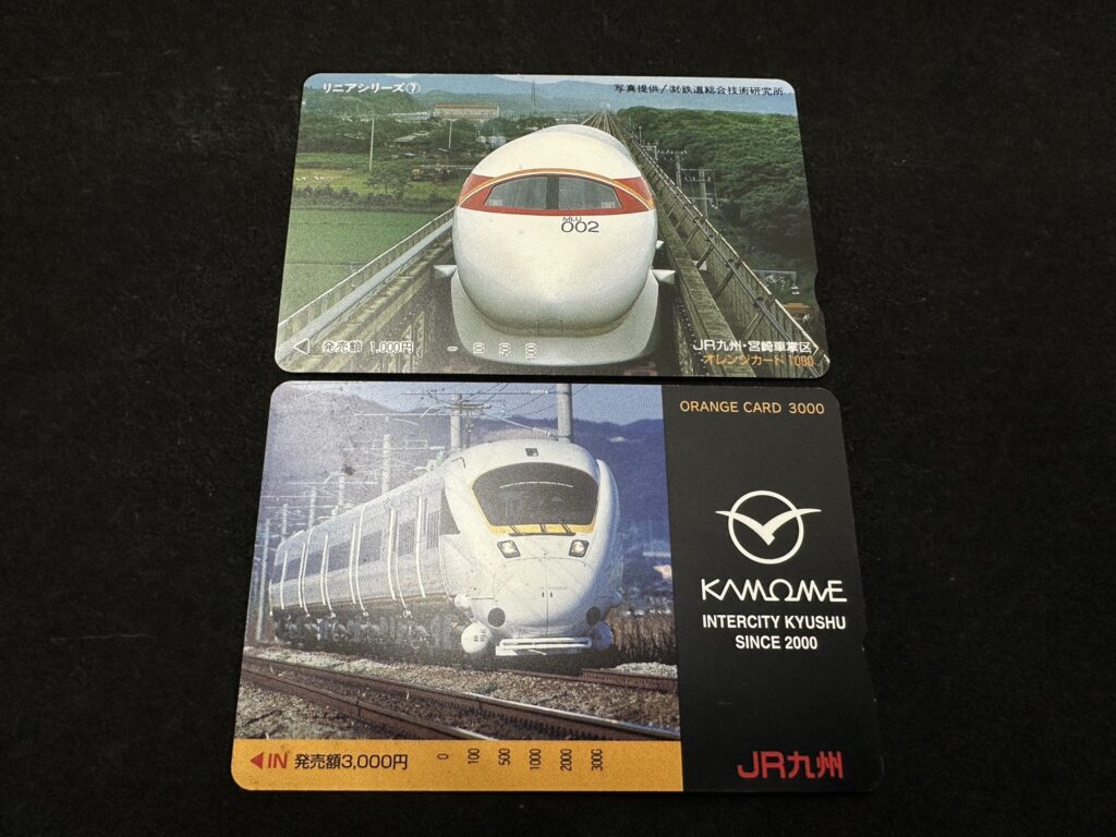 希少性の高いデザイン! オレンジカードは多種多様なデザインで発行されており、特に新幹線や特急列車などの鉄道写真が使われたカードは、鉄道ファンを中心に高い人気があります。今回お買取りしたカードも、上部がリニアシリーズ、下部がJR九州の特急「かもめ」のデザインで、非常に魅力的です。人気のデザインは、高い換金率を維持できます。