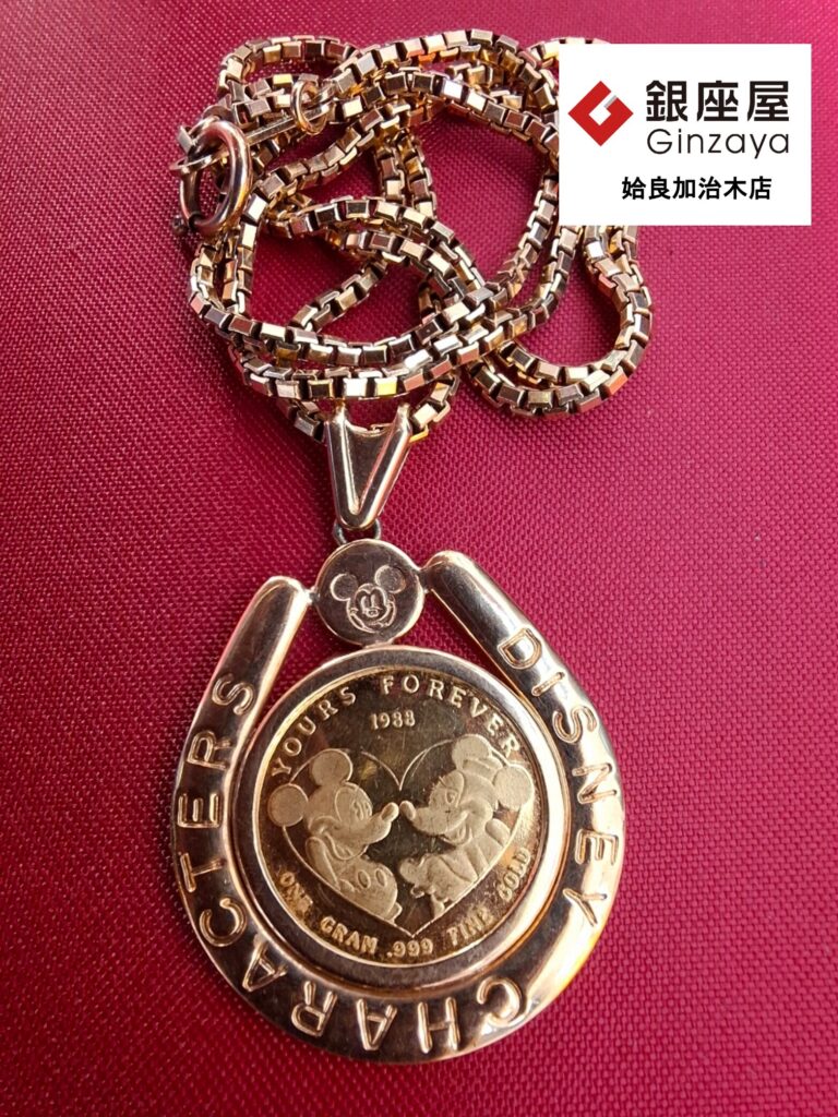 本日のご紹介です。姶良市のお客様より「1988年 ミッキーマウス  金のネックレス」をお買取させていただきました。✨