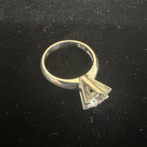 中央に配されたダイヤモンドは、立て爪によってしっかりと支えられ、どの角度からも美しい輝きを放つ存在感のある逸品でした。