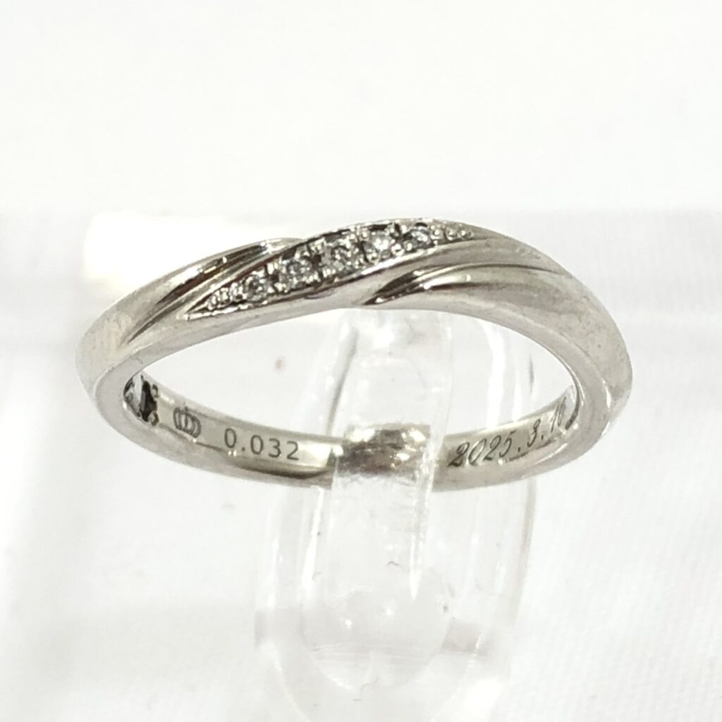 高純度プラチナを使用した上質なリングで、シンプルながらメレダイヤが上品に輝く人気のお品物です。