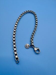 今回お買取りしたのは、こちらのボックスチェーン(ベネチアンチェーン)ブレスレットです。