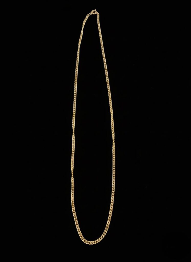 エレガントな輝きを放つゴールドのチェーンは、定番の喜平デザインの中でも存在感のある60㎝という長さが特徴です。お客様が大切にお使いになっていたお品物を、当店にご用命いただき、重ねて御礼申し上げます。