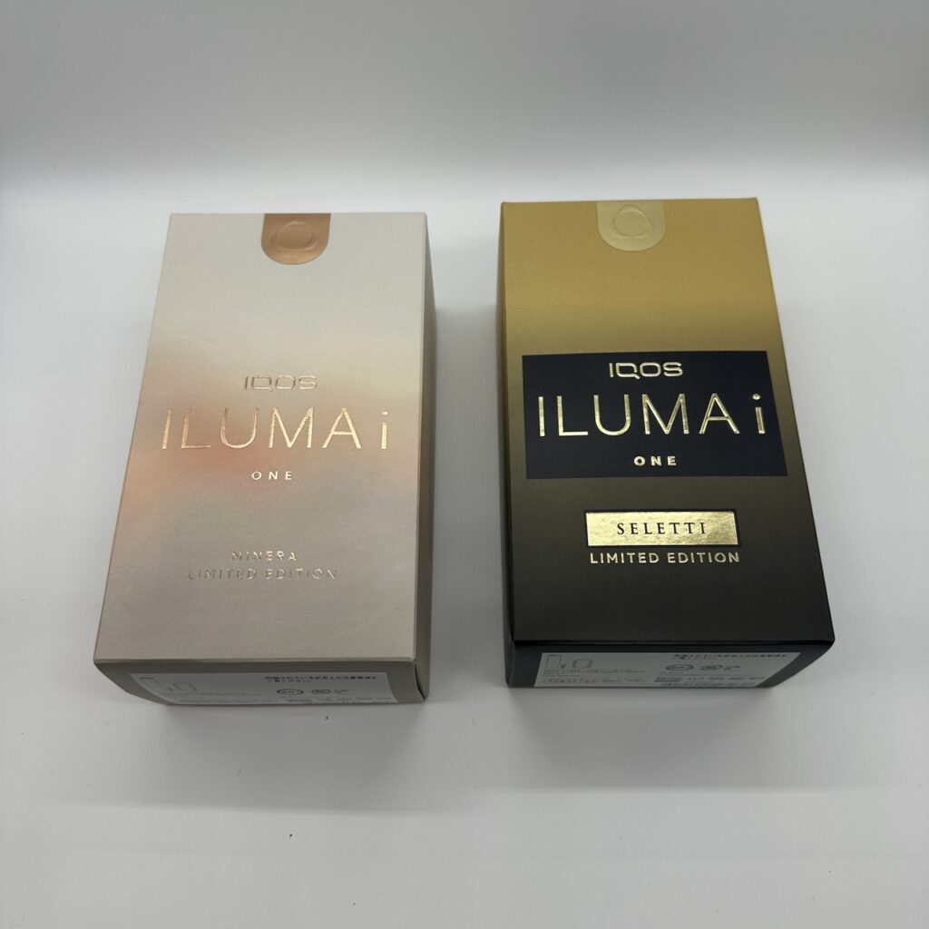 お写真の通り、限定デザインの箱に入った「IQOS ILUMA i ONE」を2つ、まとめてお買取りさせていただきました。IQOS ILUMA i ONEは、シリーズの中でもオールインワンでコンパクトな設計が人気を集めています。