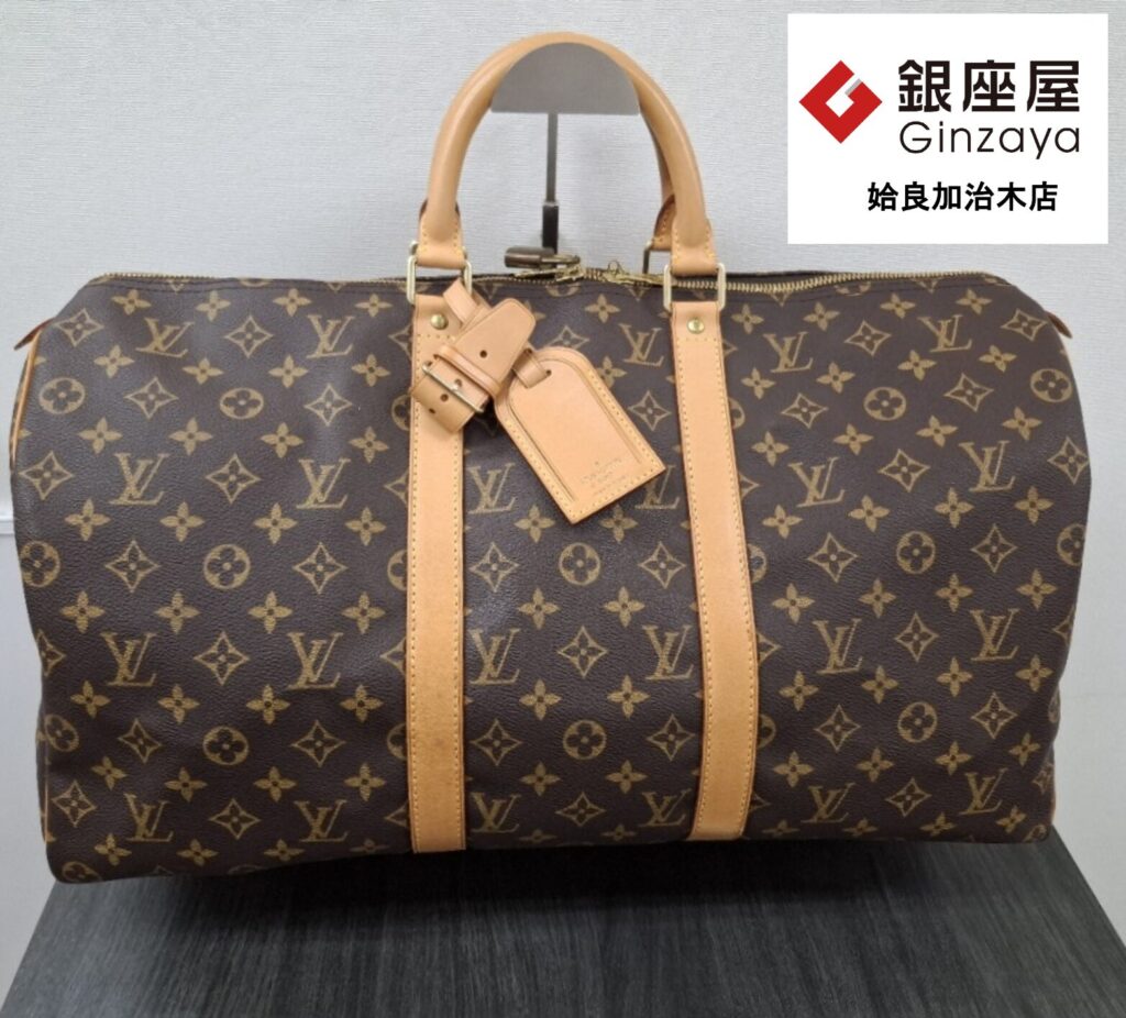 今回お買取した商品は、1930年に登場して以来、ブランドを象徴する定番バッグとして世界中の旅人に愛され続けています。幅50cmのサイズは1〜2泊の旅行に最適。耐久性に優れたモノグラムキャンバスと、使うほどに深い色艶を増すヌメ革が魅力です。大容量の内装は実用性も高く、クラシックな風格と旅の記憶を刻む存在感が魅力を放ちます。