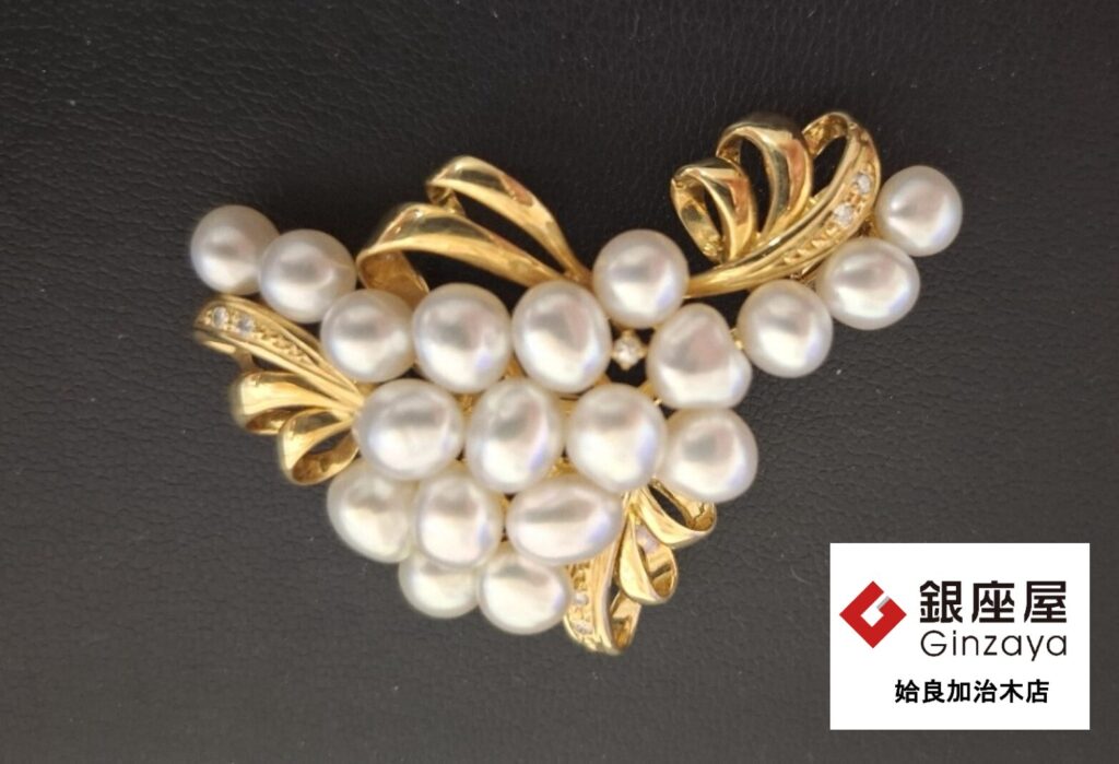 姶良市のお客様より、18金にダイヤと真珠をあしらったブローチをお買取させていただきました。