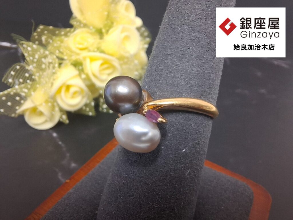 本日のご紹介です。霧島市のお客様より「18金×真珠×ルビー×ダイヤのリング」をお買取いたしました✨