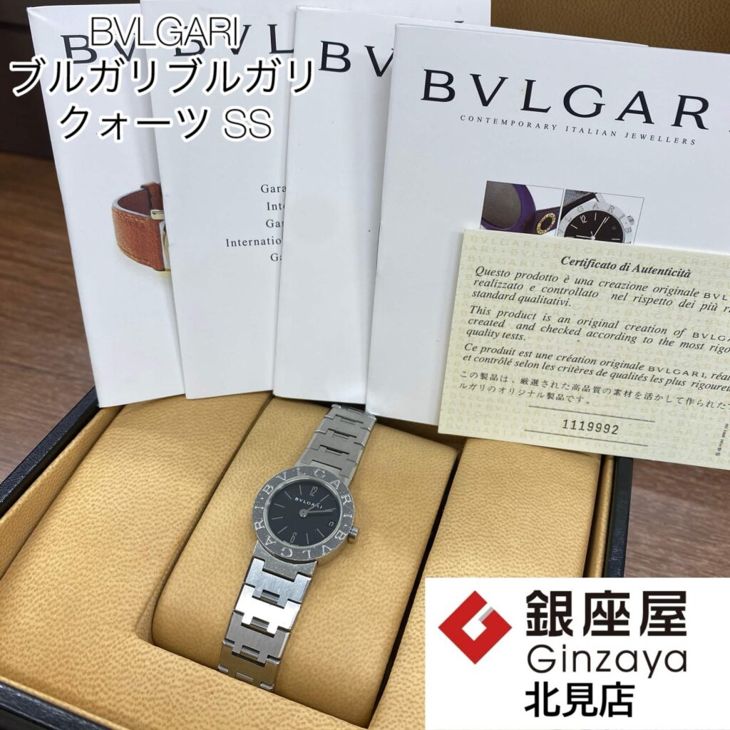 🔍 確認のポイント ・ブランド:ブルガリ (BVLGARI) ・型番:BB23SS ・素材:ステンレススチール (SS) ・ムーブメント:クォーツ (電池式) ・文字盤の状態 ・ベルトの伸びや外観の使用感 ・動作の確認(精度など) ・付属品(箱・保証書・余りコマなど)の有無