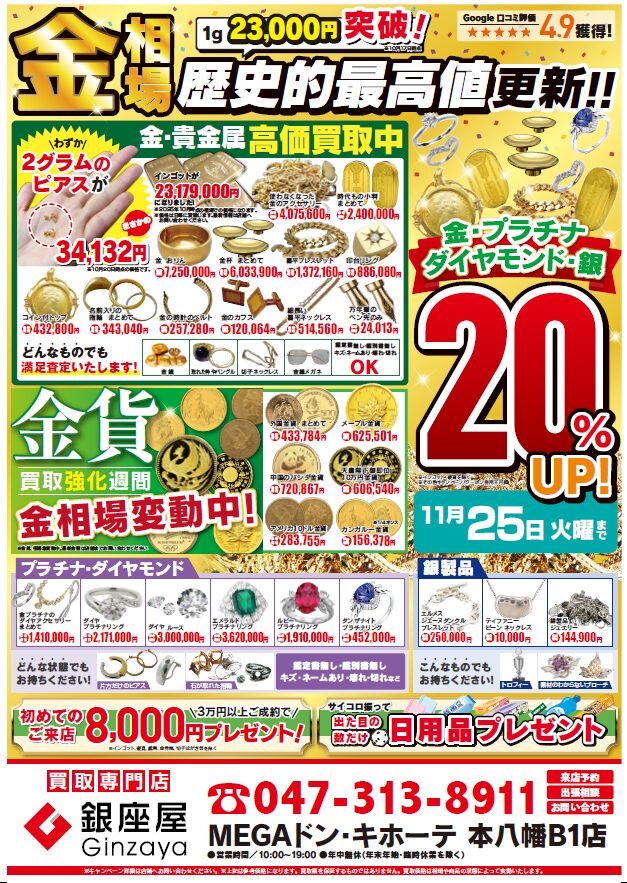 #高価買取 #本八幡 #市川 #市川買取 #貴金属買取 #金買取 #銀買取 #プラチナ買取