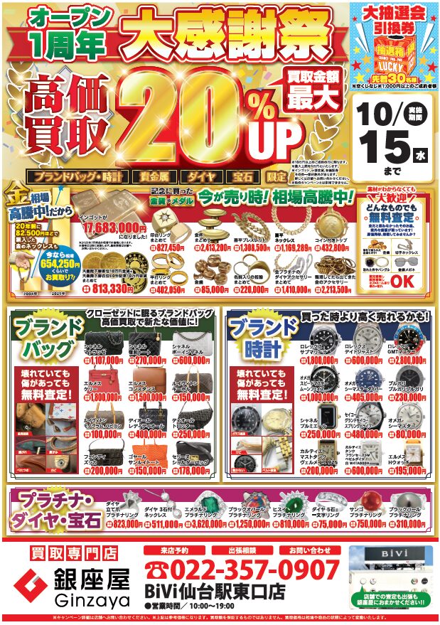 「昔から持っているけど価値が分からない」「少しでも高く売りたい」という方もぜひこの機会に買取専門店 銀座屋BiVi仙台駅東口店にご相談ください😊 💰