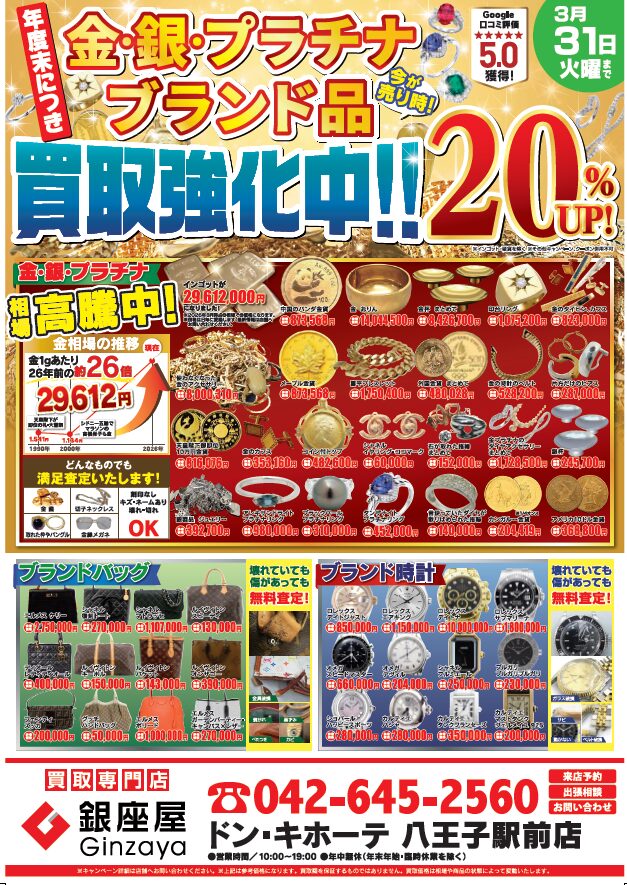 ✨金・プラチナ・銀・ブランド品【20%UP】キャンペーン実施中✨