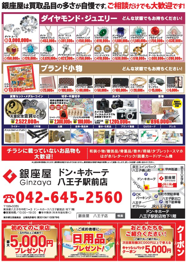#買取 #買取専門店 #高価買取 #銀座屋 #八王子 #ブランド買取 #貴金属買取 #金買取 #プラチナ買取 #銀買取 #アクセサリー買取 #壊れたアクセサリー #遺品整理 #生前整理 #引っ越し整理 #不用品回収 #片付け #断捨離 #査定無料 #即日査定