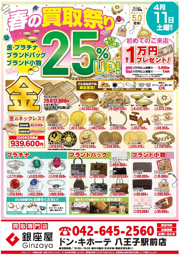 金・プラチナ・ブランド品が【25%UP】の大チャンス!!🎉