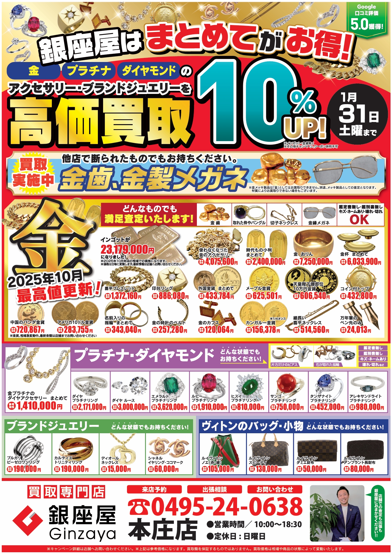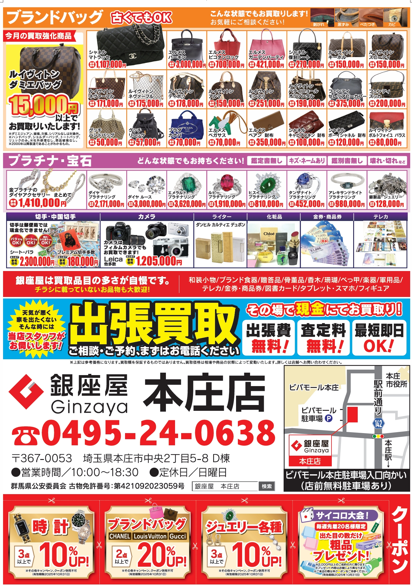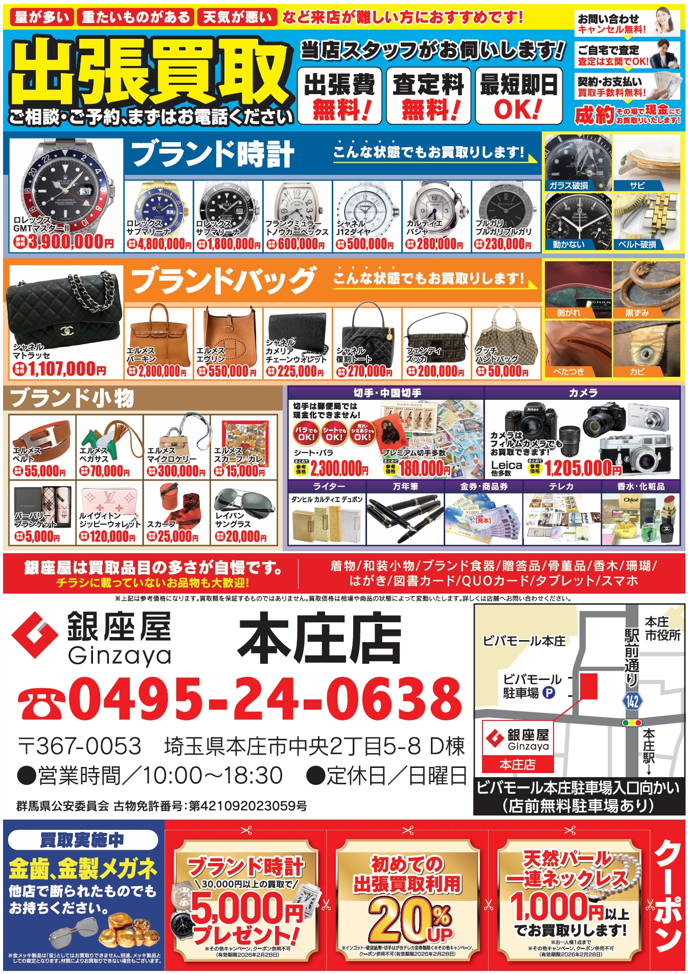 皆様、こんにちは^^買取専門店 銀座屋本庄店でございます。