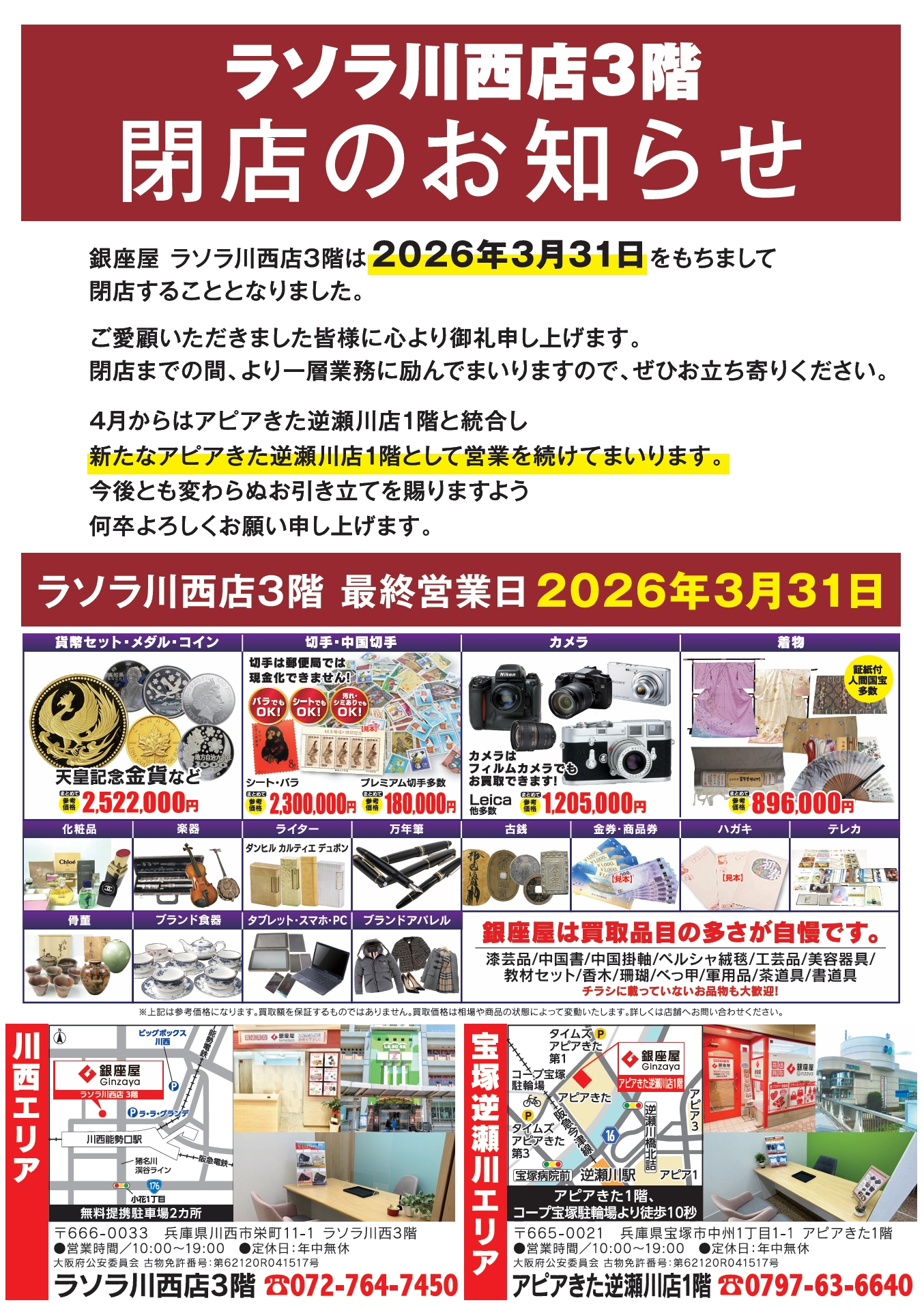 買取専門店 銀座屋アピアきた逆瀬川店1階