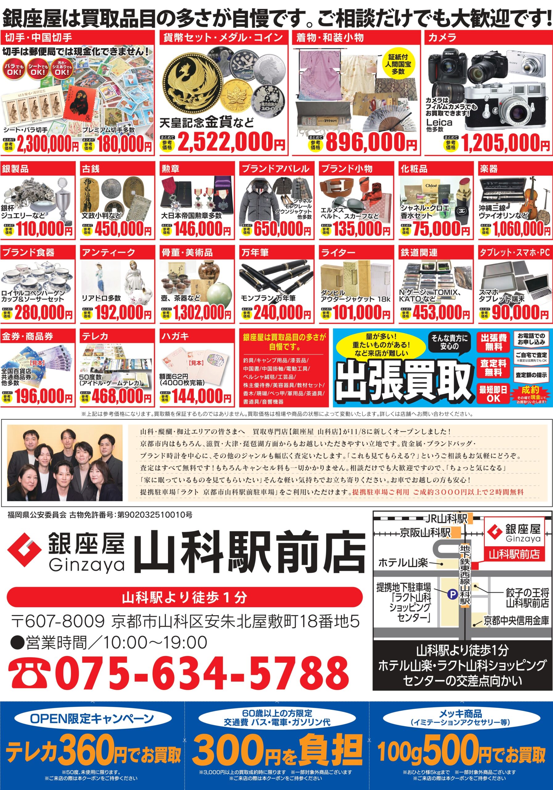 そんなお品物をお持ちの方は、ぜひ一度、JR山科駅からすぐの銀座屋 山科駅前店にご相談ください。使いかけの香水一点からでも、丁寧に査定させていただきます。もちろん査定は無料です。🆓