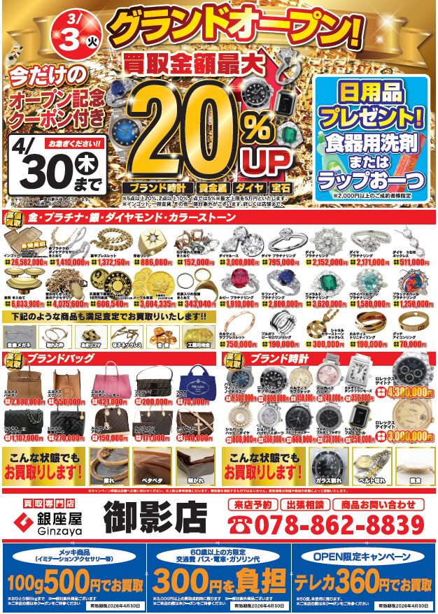 買取専門店 銀座屋 御影店です。