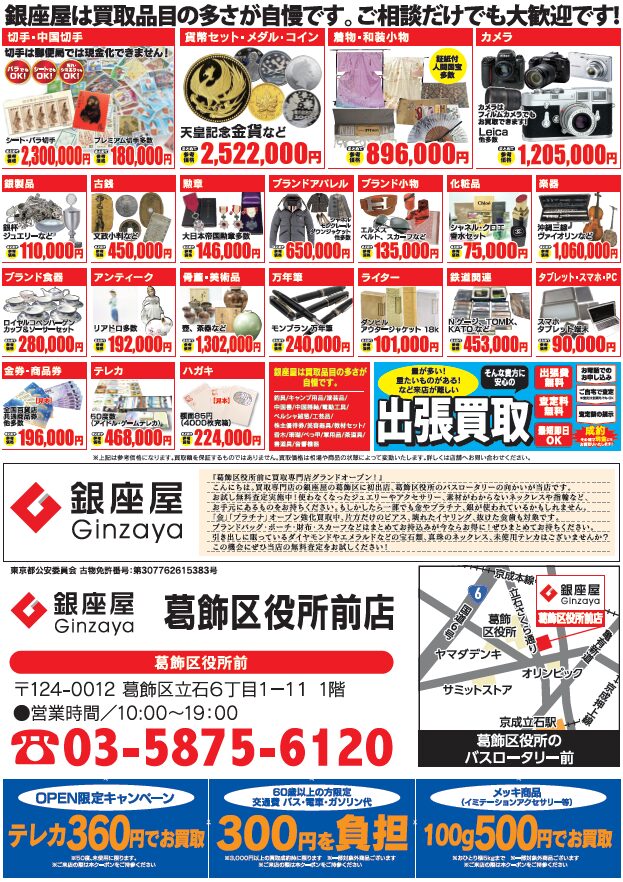 買取専門店 銀座屋 葛飾区役所前店 3月5日OPEN!