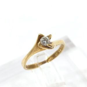 柔らかいイエローゴールドの輝きと、一粒ダイヤを引き立てる独特のアームデザインが特徴的なお品物です💍